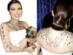 Bir süre önce “Sana Söz” adlı yeni albümünü çıkaran şarkı sözlericı albüm kartoneti için de vücudunu taşlarla süsleterek objektif karşısına geçti. Ve bu çalışmayı çok sevmiş olacak ki “Sana Söz”ün tanıtımını yaptığı “Ceylan Show”a yine aynı şekilde hazırlanıp çıktı.