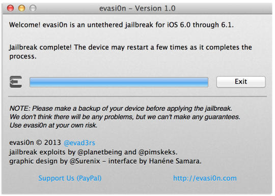 Bu yeni aracın kullanımının kolay olduğunu söylemek mümkün. Aslına bakarsanız iOS 6 jailbreak, geçen yıl çıkarılan iOS 5.1.1 jailbreak aracından daha kolay. Öyle ki iOS 6 jailbreak, çok az zamanınızı alıyor ve birkaç adımda tamamlanıyor. Eğer bilgisayarınızda birkaç butona basmak ve iOS cihazınızda bir ikona tıklamak sizi yormuyorsa evasi0n için yeterince hazırsınız demektir.