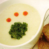Malzemeler 2 patlican 2 yemek kaşığı zeytinyağı 1 soğan 2 diş sarımsak 6 su bardağı tavuk suyu Tuz Süslemek için Maydanoz