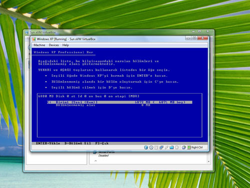 Bu mavi ekran aracılığıyla kurulum dosyaları sabit diskimize kopyalandıktan sonra sıra sabit diskimizin seçilmesine geliyor. Windows sistemde takılı olan tüm diskleri ve bölümleri listeleyecek. Dileidğinizi seçin.
